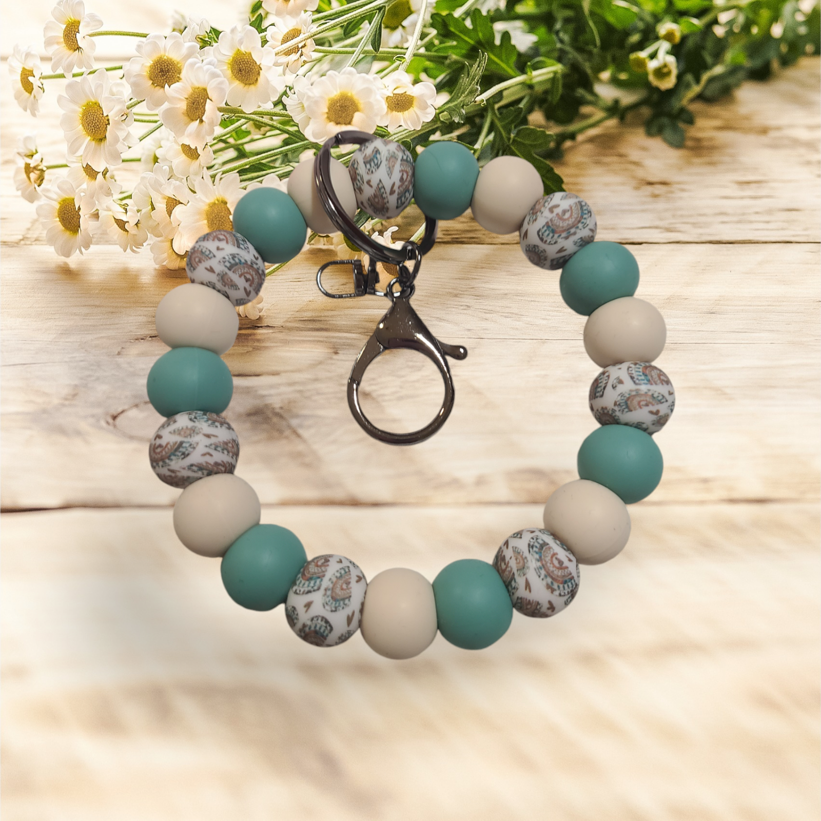 Almond Mint Beaded Wristlet Keychain