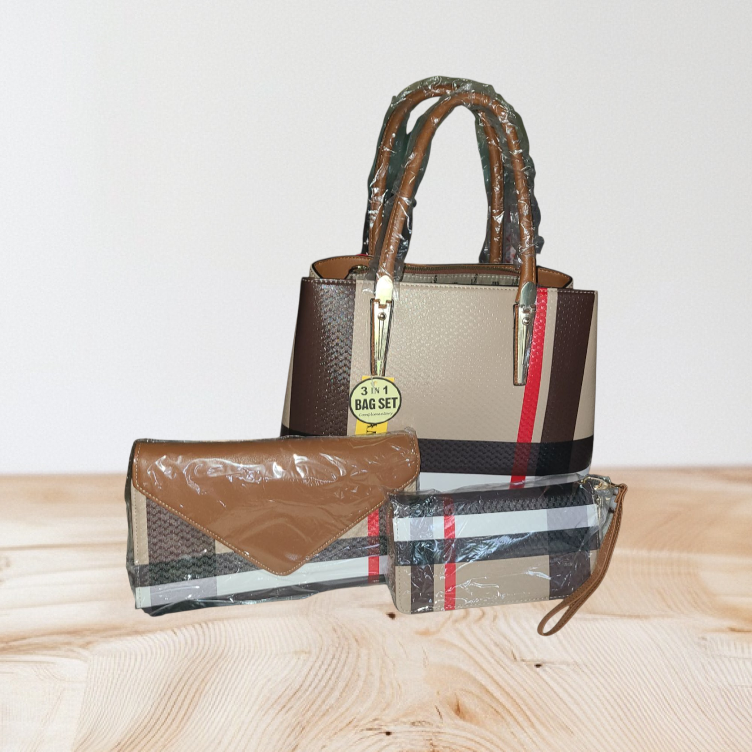This 3-piece purse set is perfect for the modern woman on the go. Crafted with high-quality materials, this set includes a handbag, clutch, and matching wallet. Stay organized and stylish with this versatile and durable set.