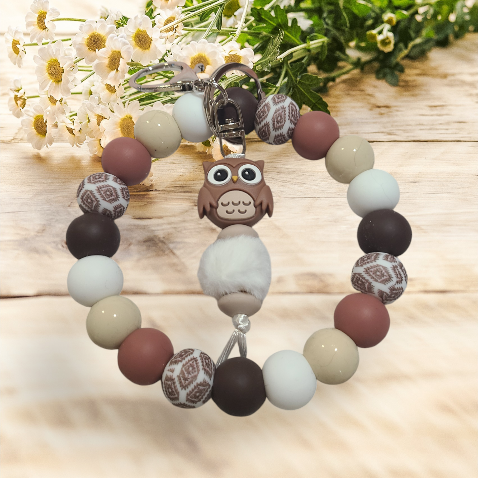 Owl Beaded Wristlet Keychain