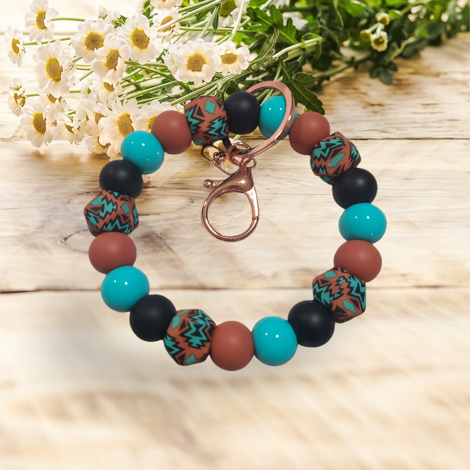 Western Aqua Beaded Wristlet Keychain